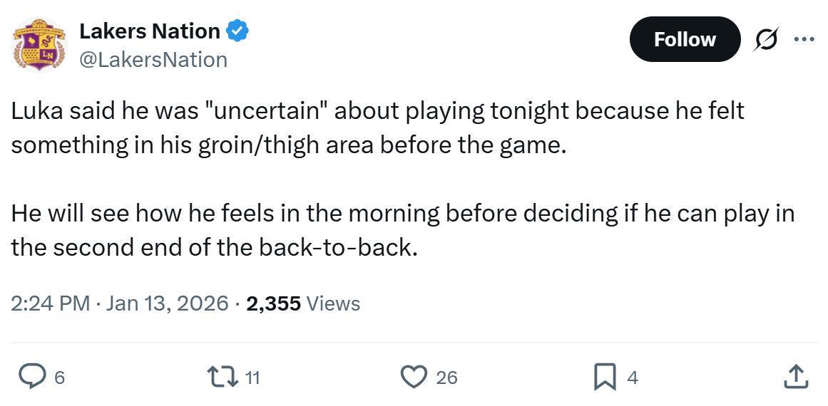 因此在本场比赛出战后,自己也会在明早再根据身体状况决定是否参加背靠背的第二场比赛。