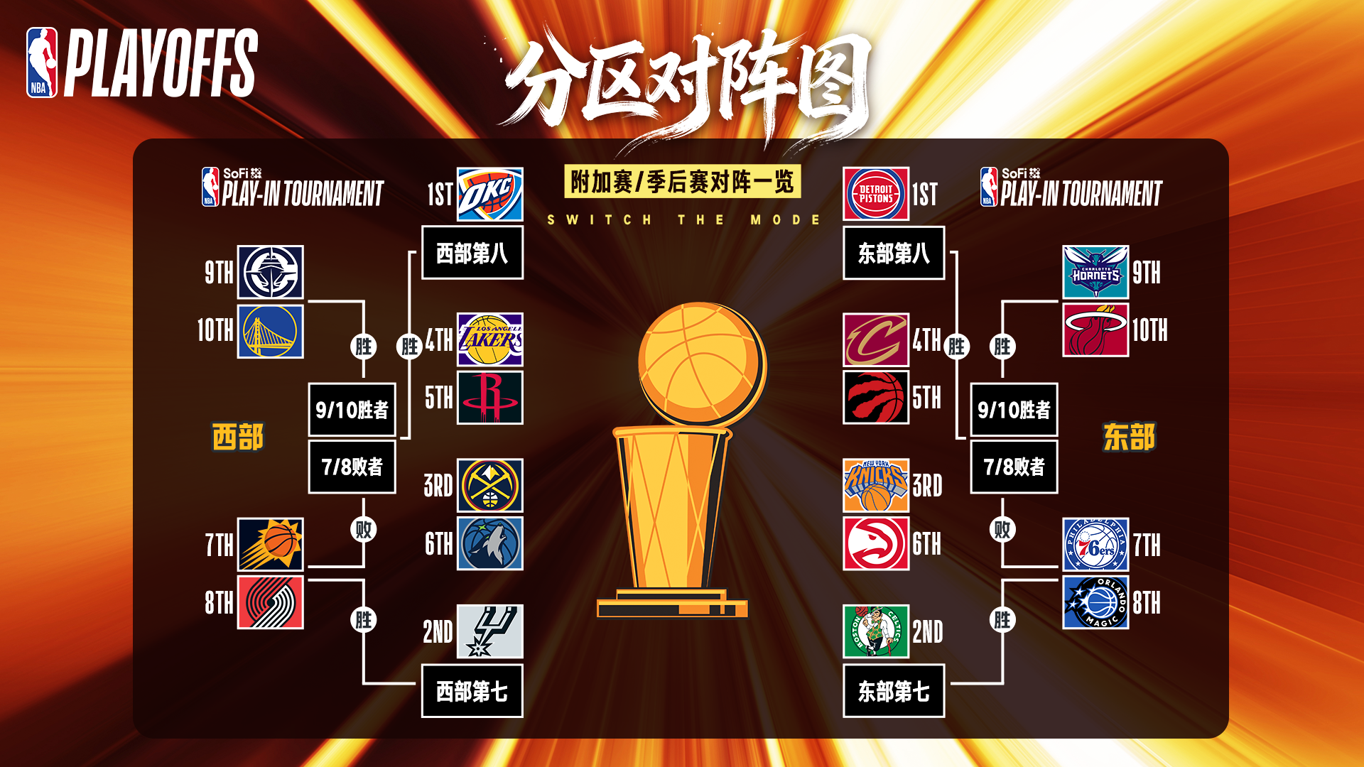 附加赛将于4月15日打响,首先进行的是热火VS黄蜂、开拓者VS太阳,随后在4月16日进行魔术VS费城、勇士VS快船。