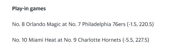 东部第七的费城VS东部第八的魔术、东部第九的黄蜂VS东部第十的热火。